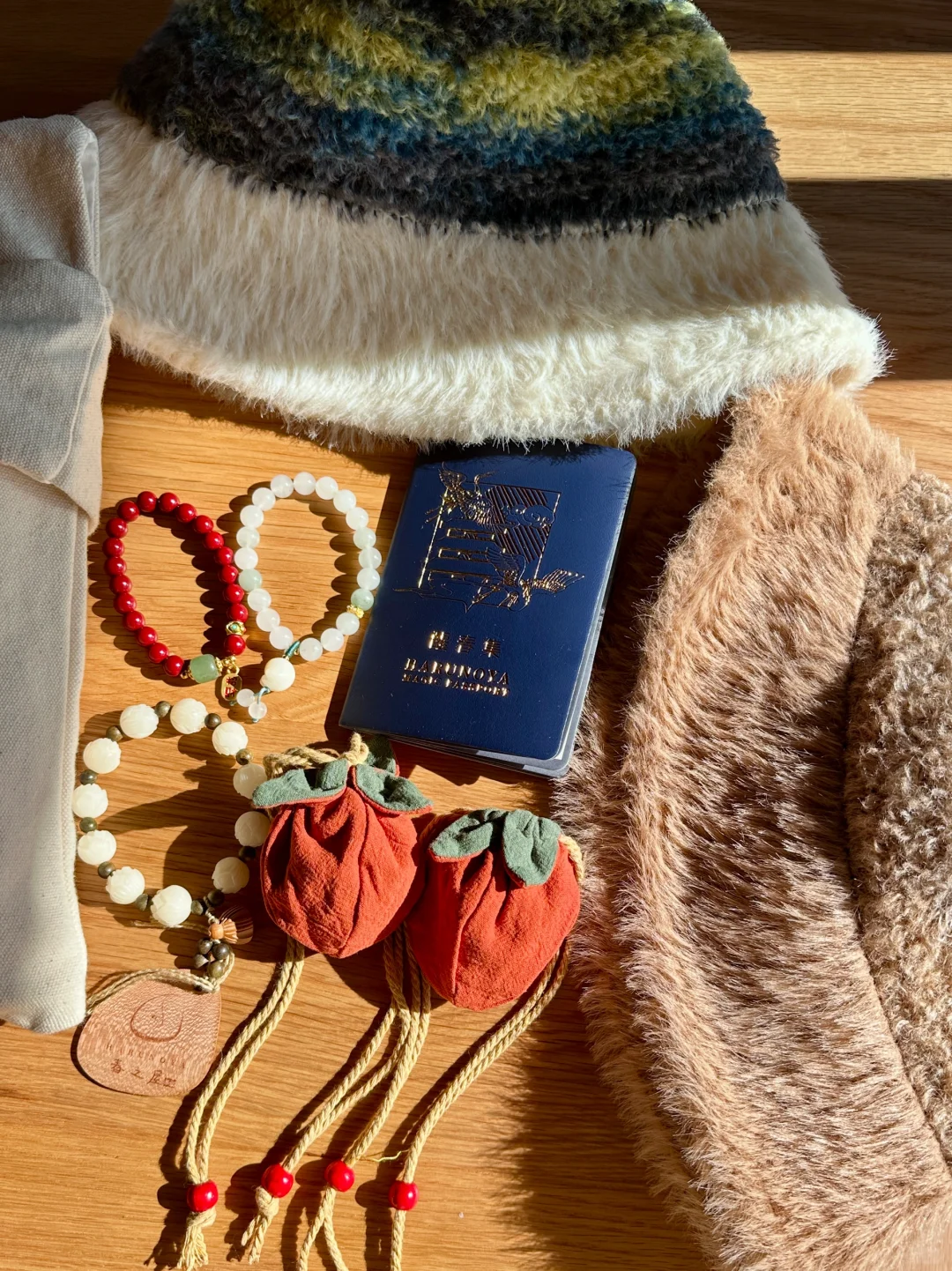 退房时,发现我们带走了一堆,有帽子、手链、香囊……