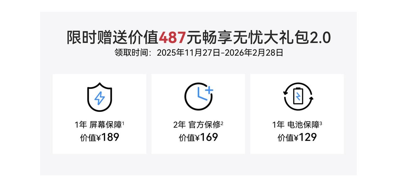 值得一提的是,华为畅享 70X 尊享版还搭载麒麟8000,可以感受到麒麟芯片的性能门槛正在从千元产品逐步提升,让更多用户以更低成本体验科技的乐趣。此外,购买新机的用户,自开售日起至2026年2月28日,还可免费领取价值487元的畅享无忧大礼包2.0,包含1年屏幕保障、2年官方保修及1年电池保障,让新机使用全程无忧,售后保障拉满。目前,这款集颜值、性能、安全与便捷于一体的新机,256GB售价1999元、512GB售价2299元,已在华为商城、授权电商、华为体验店等渠道同步开售。