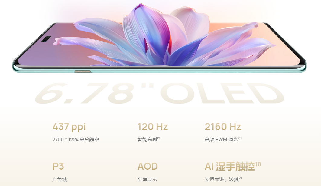 屏幕方面,它搭载了畅享系列首款3D双曲OLED屏,6.78英寸的大屏幕搭配1.5K臻彩AI护眼屏,437ppi像素密度与P3广色域覆盖,让画面细节清晰细腻、色彩饱满真实。120Hz最高刷新率带来丝滑流畅的操作体验,滑动页面、玩轻量级游戏都毫无卡顿感。更贴心的是AI护眼引擎,2160Hz高频PWM调光有效降低屏幕频闪,搭配万阶调光与节律护眼功能,长时间看手机也能减少眼部疲劳,追剧、办公、上网课再也不用为眼睛不适发愁。