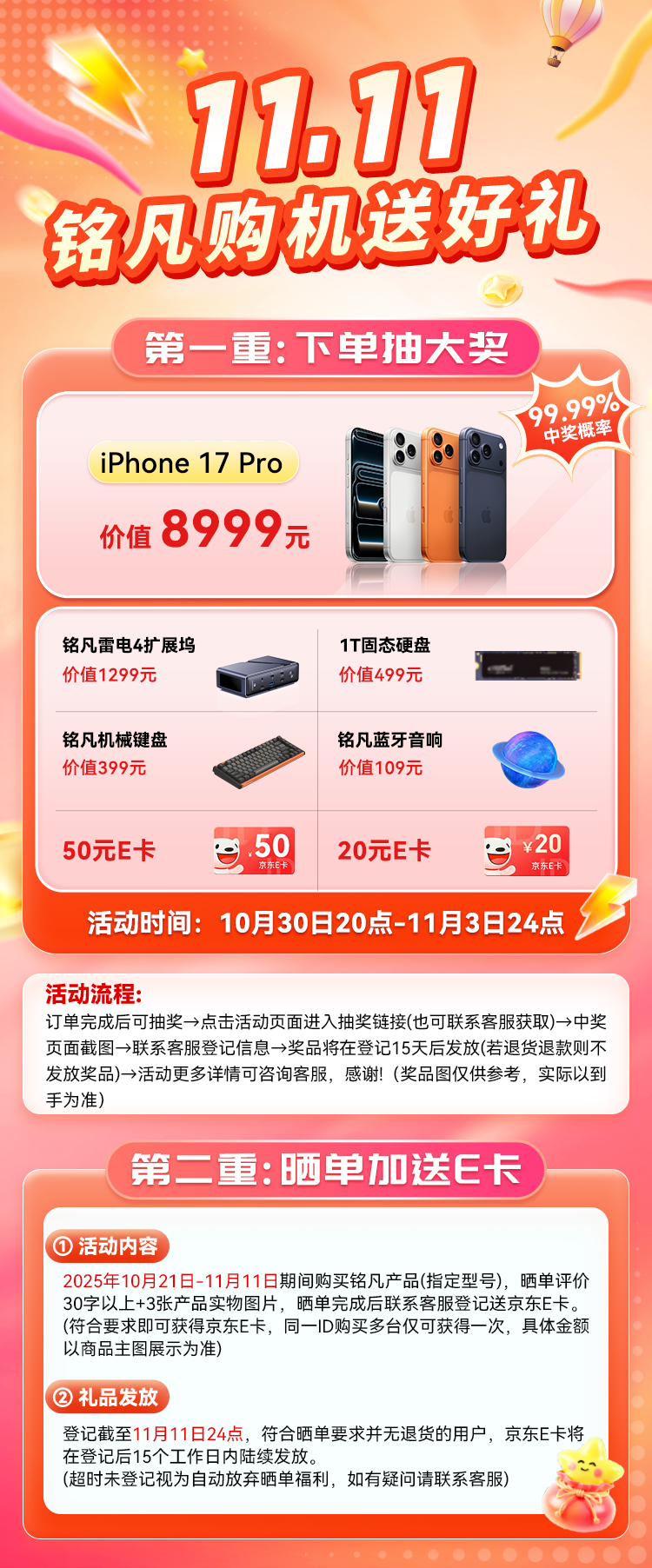 铭凡迷你主机双十一入手就是此刻:下单抽iPhone17Pro,99%中奖率