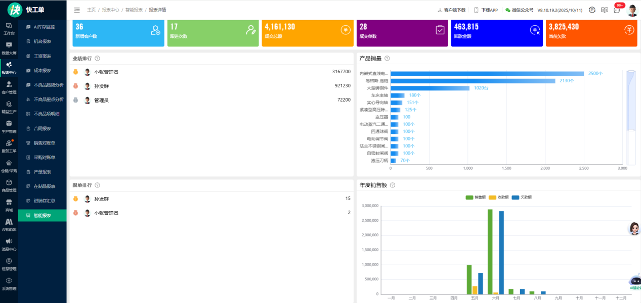 像张老板这样的案例还有很多:做农机配件的刘老板,用「快工单」后产能从每月 400 件提到了 650 件,没加人没加设备;做模具的陈老板,以前每月要赔两三笔逾期违约金,现在半年没出过一次延期,客户复购率涨了 40%。他们都不是什么 “大厂”,只是靠「快工单」理顺了流程,把 “浪费的时间、做错的成本” 变成了 “能接的订单、能赚的钱”。