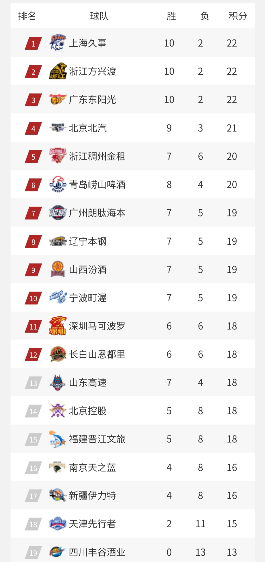 本赛季同样出现了一些黑马球队,比如排名第七的广州男篮和排名第十的宁波男篮,都是七胜五负的战绩。宁波男篮上赛季只赢了十场球,再赢四场就超越上赛季战绩,目前来看已经是板上钉钉的事了。山东男篮虽然排名第十三位,但重返季后赛区也只是时间问题。