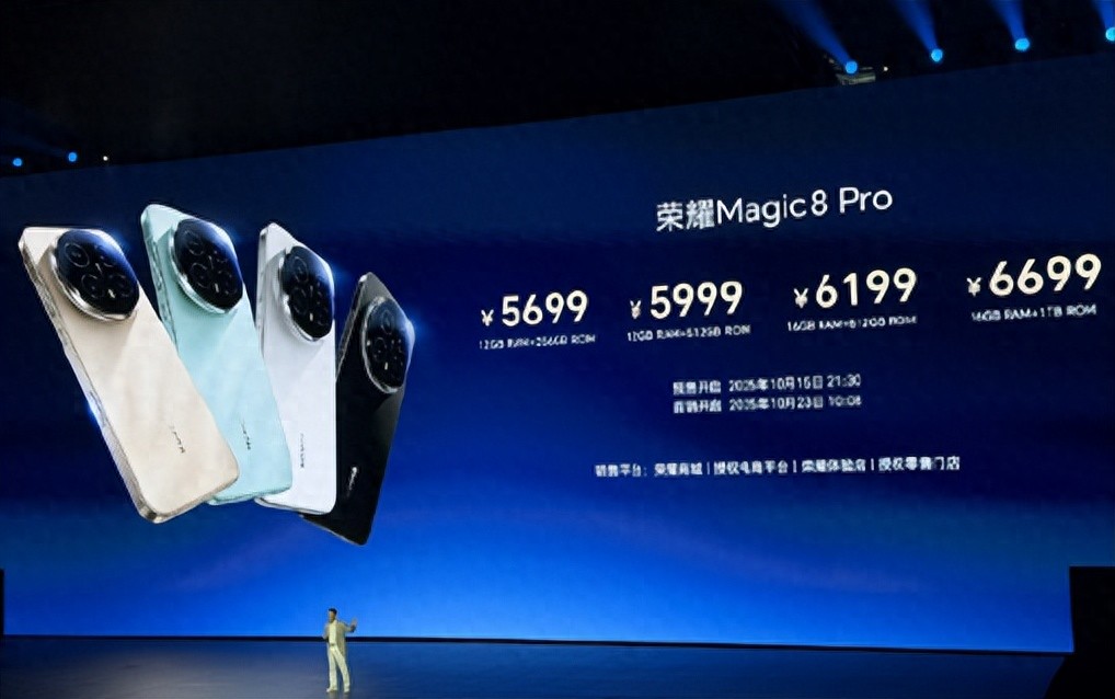 Magic8 Pro:提供3个存储版本,12GB+256GB售价5699元,12GB+512GB售价5999元,16GB+1TB售价6699元。