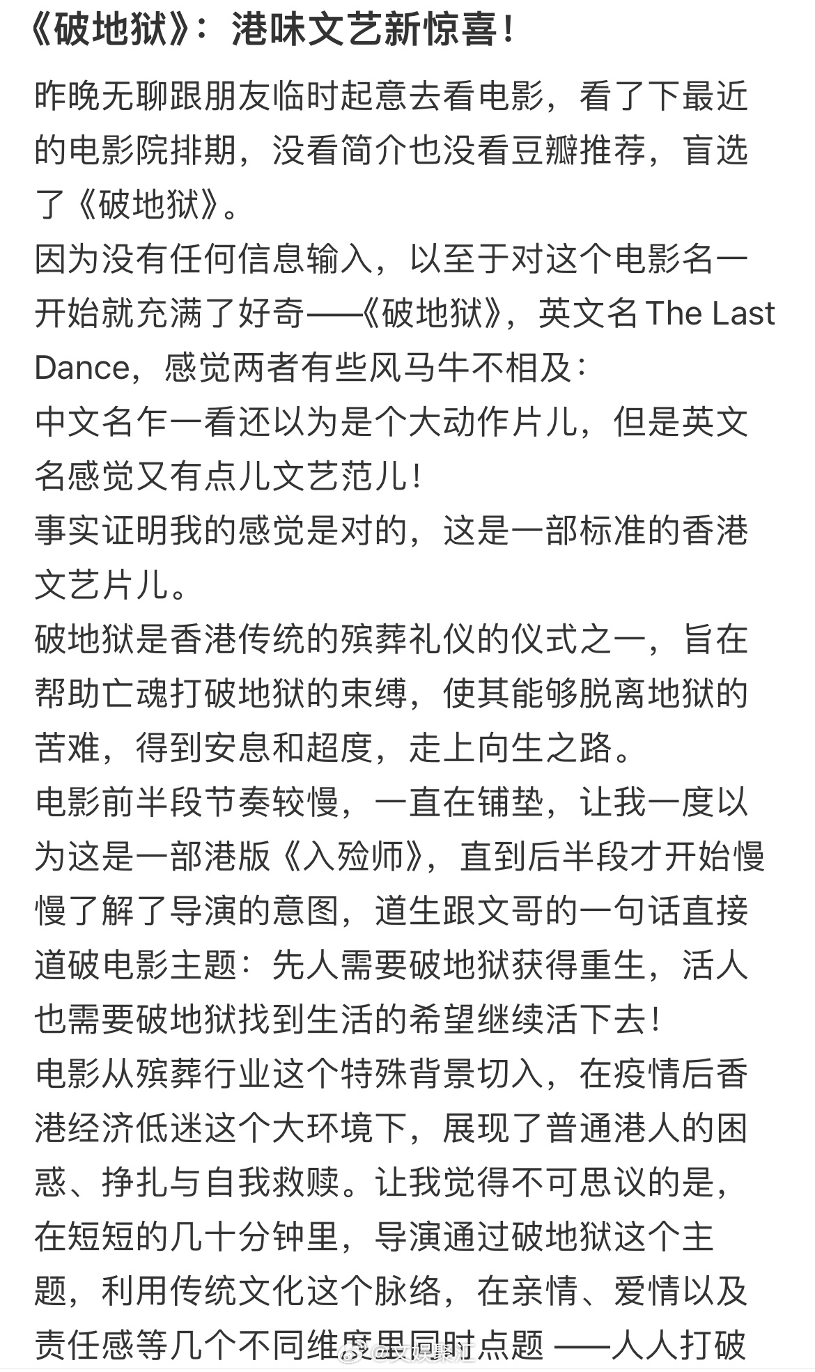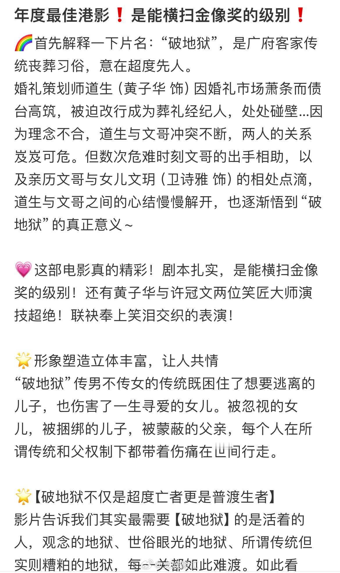 《破地狱》简直是一部“破天荒”的作品!港片的复兴不仅仅是题材的突破,更是情感的深刻表达。用殡葬这个话题,打破偏见,直击人心。港片在复兴,值得每个人的期待!