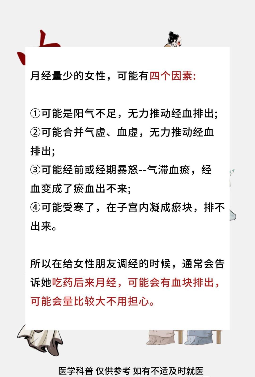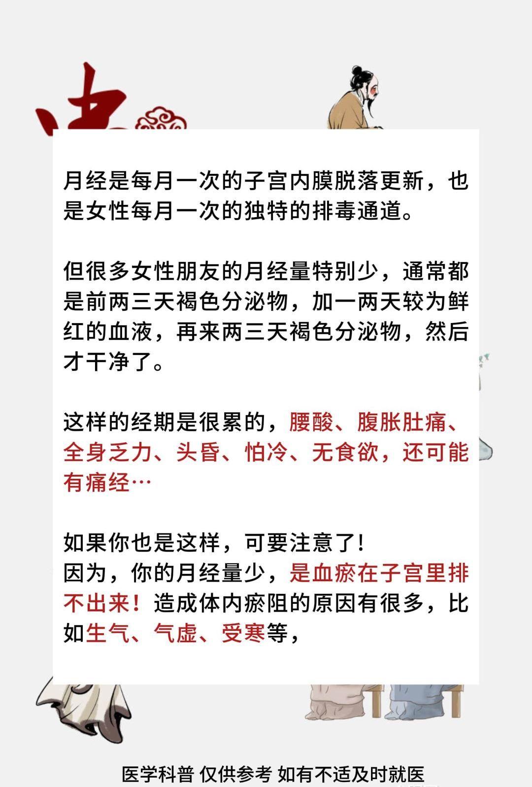 月经量少,2-3天就没了,先排瘀。