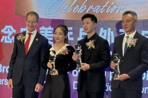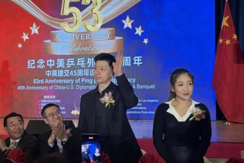 洛杉矶晚宴内场图曝光啦!马龙那可是一身西装革履,打扮得超帅气,往那一站,气场全开,简直帅到让人移不开眼。再看刘诗雯,穿着开叉半裙,尽显优雅端庄的气质,一举一动都散发着迷人的魅力。这两位体育界的明星在晚宴上的亮相,真是太吸睛了,妥妥地成为了全场的焦点,让大家看到了他们赛场外不一样的风采。