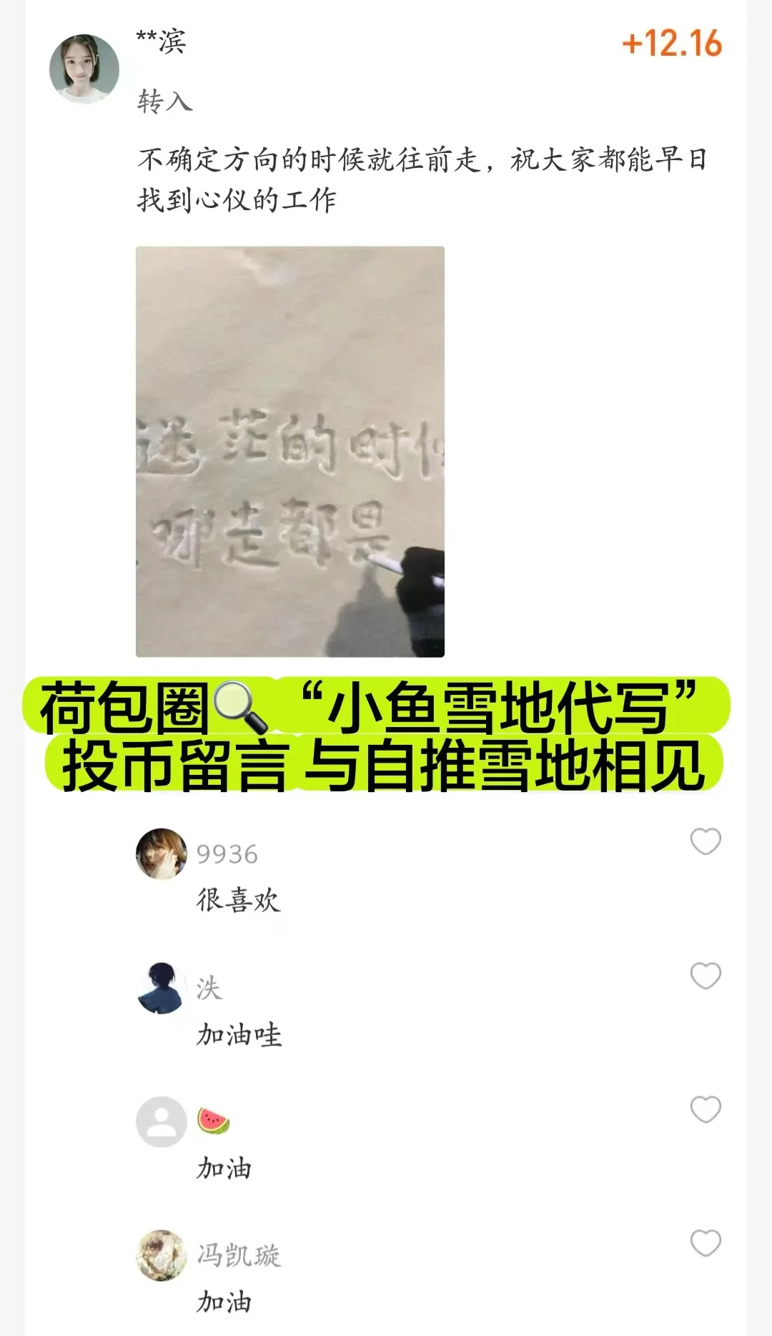 而是有人在雪地上写你的名字
