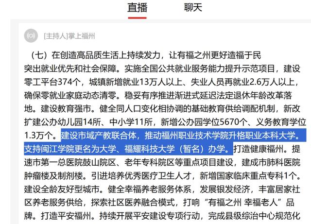 ●建设市域产教联合体,推动福州职业技术学院升格职业本科大学。