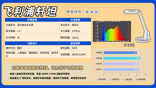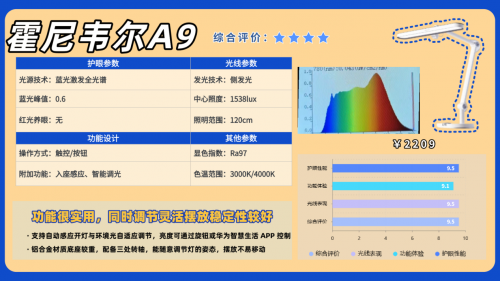 一句话推荐:亮度比较充足,支持智能调光与定时功能,满足日常学习需求。