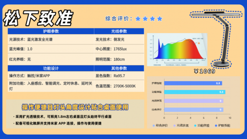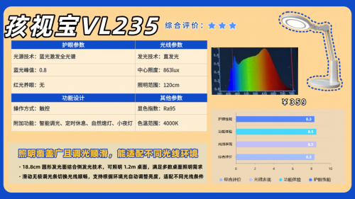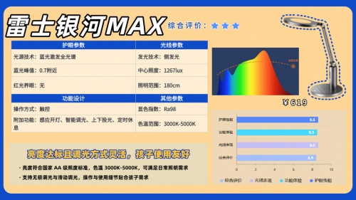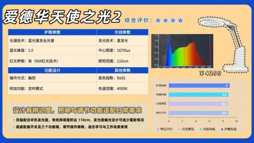 一句话推荐:通过紫光激发技术和红光养眼技术,精准过滤380-455Nm有害蓝光,有效缓解眼睛疲劳,使得眼睛更有活力,降低96%近视风险!