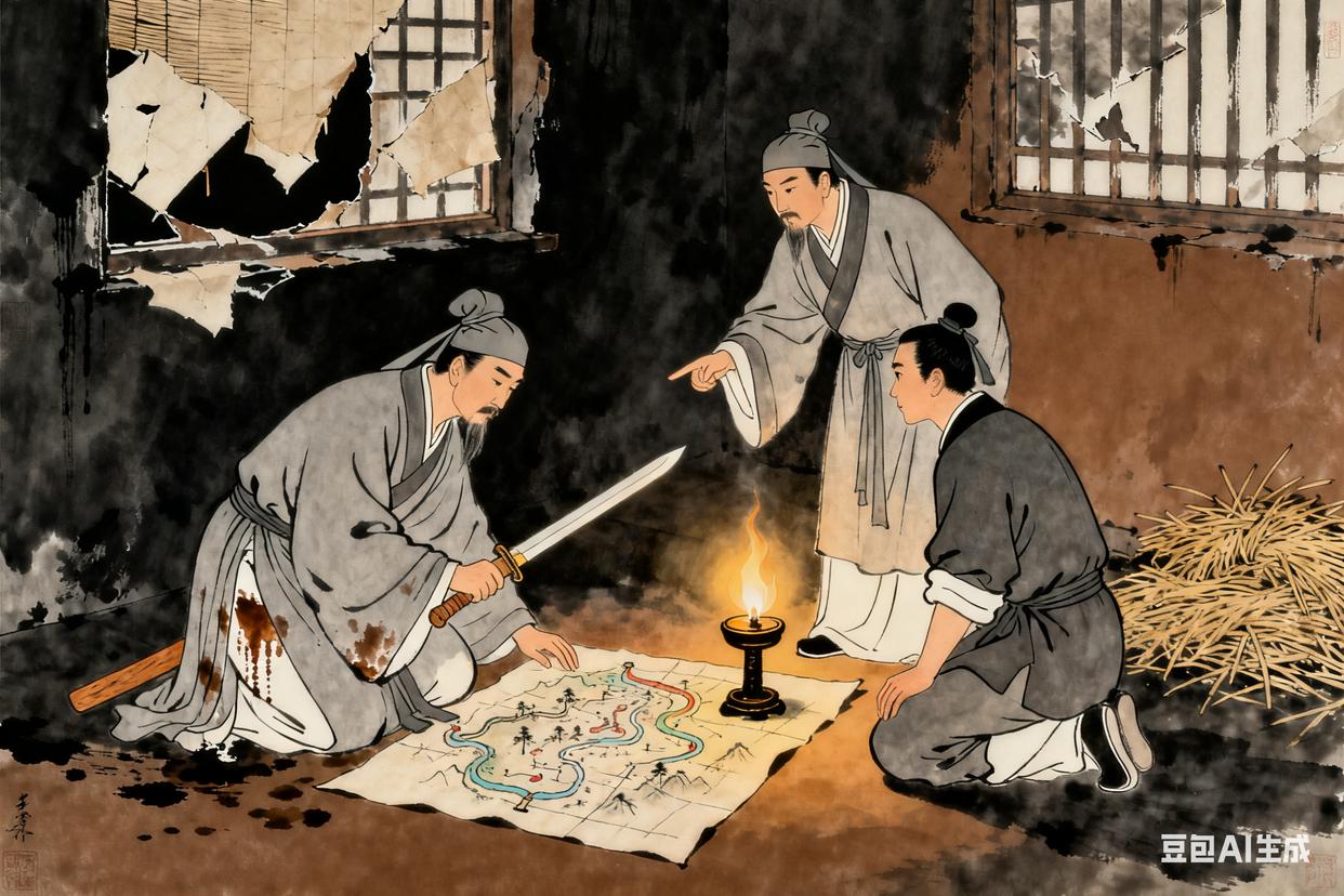 武德九年六月初三的夜晚,长安城的街道空无一人,只有巡夜的士兵脚步声偶尔传来。长孙无忌穿着便服,快步走到城外的一座破庙里,推开门时,房玄龄和杜如晦正坐在草堆上,身上穿着道士服——那是为了避人耳目特意找来的,布料粗糙,磨得皮肤发紧。