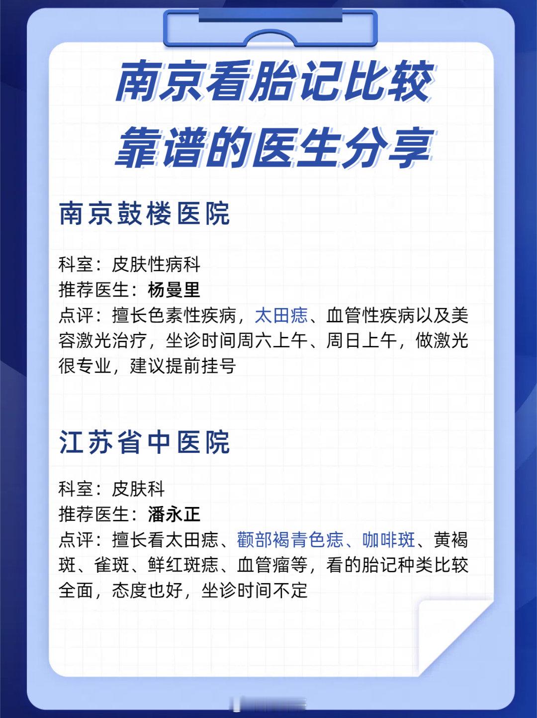 推荐几个个人觉得还不错的南京胎记医生,基本都是看过的医生或者身边朋友比较了解的,均可在医院公-众-号上预约到,个人推荐无广!