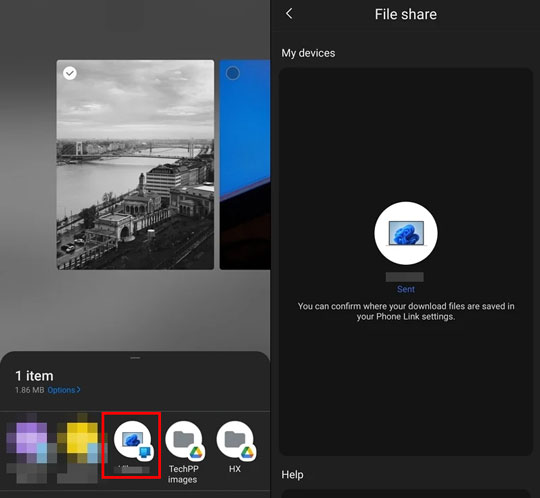 步骤 3:在三星手机上找到要传输的文件。选中这些文件,然后点击“共享”>“链接到Windows ”。接着选择您的Windows电脑。文件就会传输到您的电脑上。