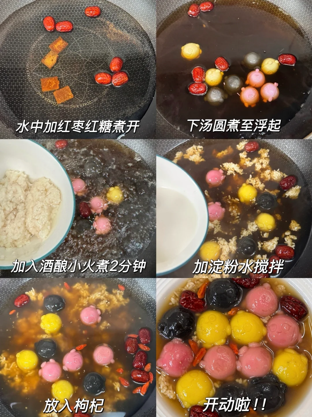 食材:汤圆、红糖、酒酿、枸杞、红枣