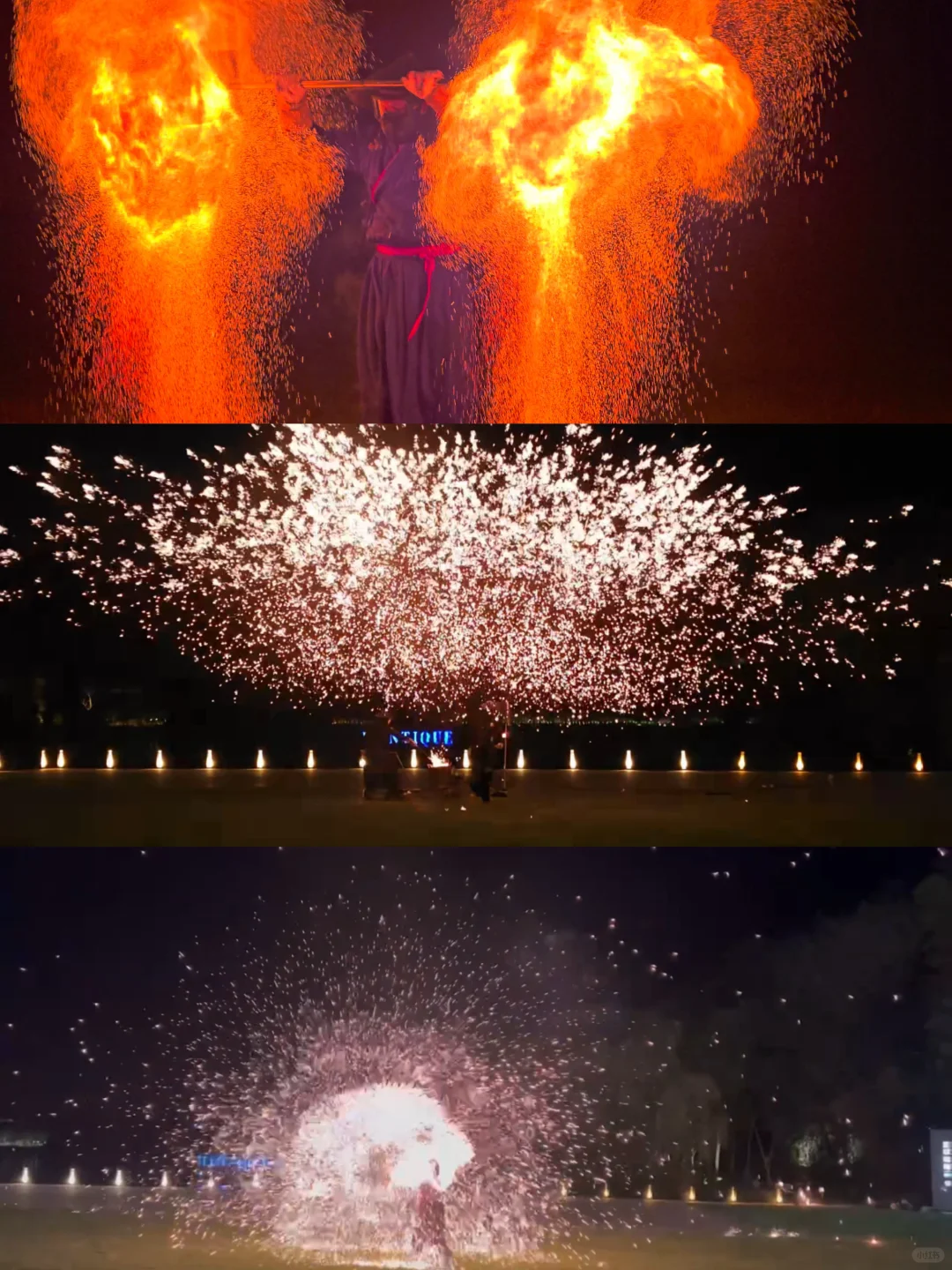 春节期间还有非遗打铁花,风火轮和火壶表演🎭,展现传统技艺的魅力与震撼,年味十足!