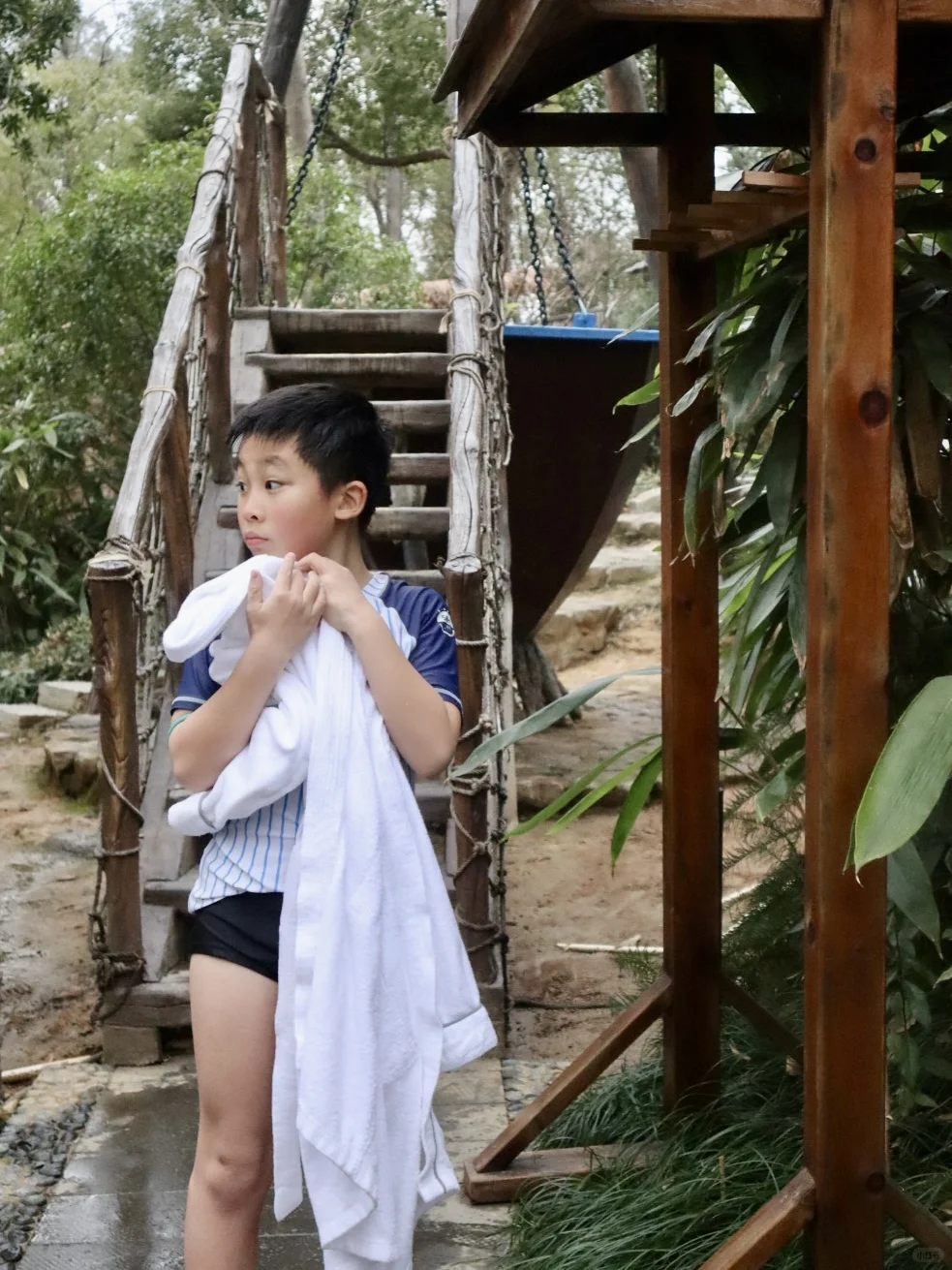 小朋友们在户外汤池里玩得很开心,室外温泉一点也不冷,更衣室有拖鞋浴衣毛巾淋浴房,泡汤区有姜茶管够。