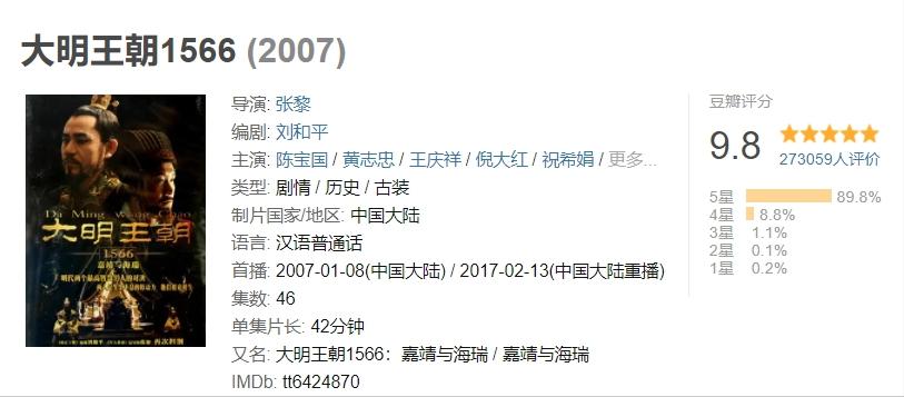 其实《大明王朝》的评分反超《雍正王朝》也是有一定的原因的。