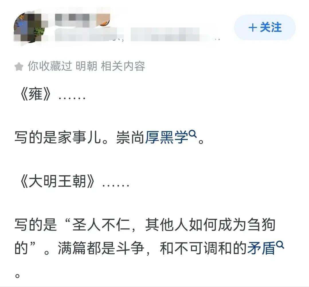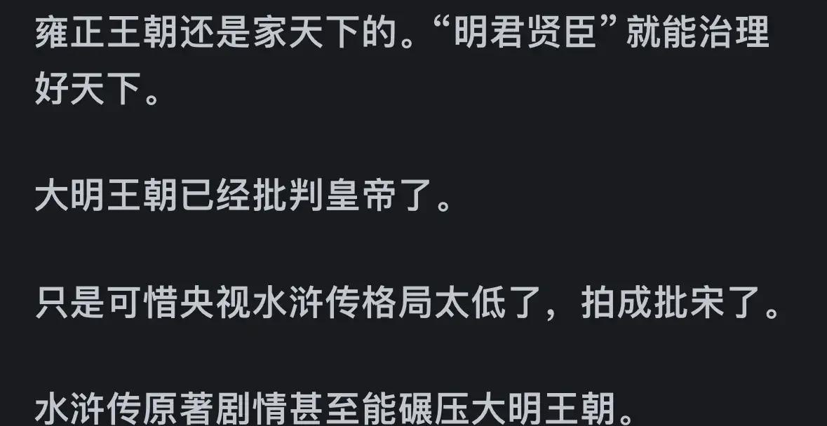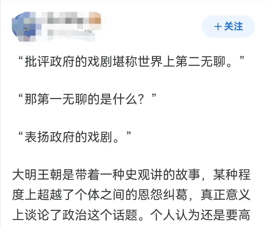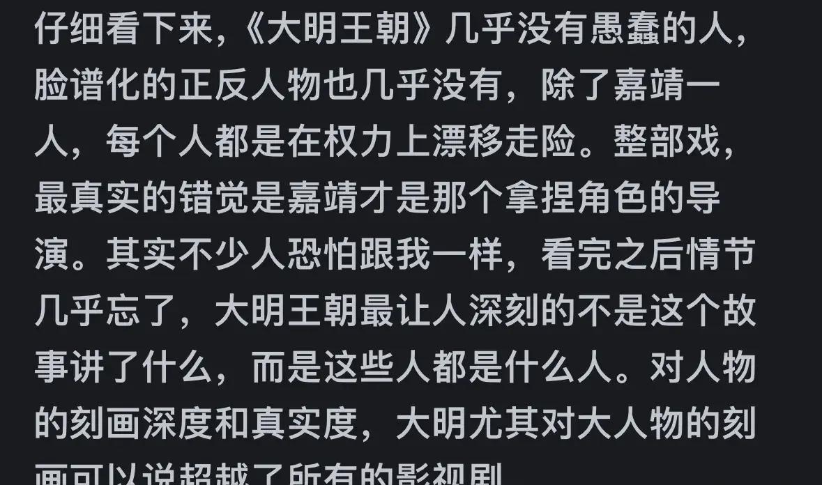 认为《大明王朝》更胜一筹的影迷则说,这部剧可贵的一点就是,在看完这部剧以后,只会感叹新时代的好。