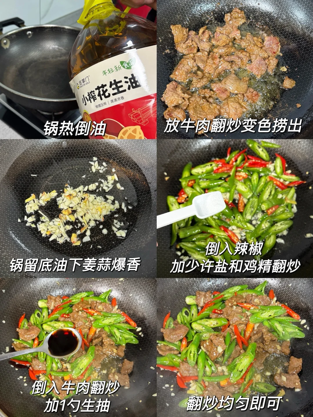食材:牛肉、线椒(不能吃辣的可换成青椒)、小米辣、姜末、蒜末