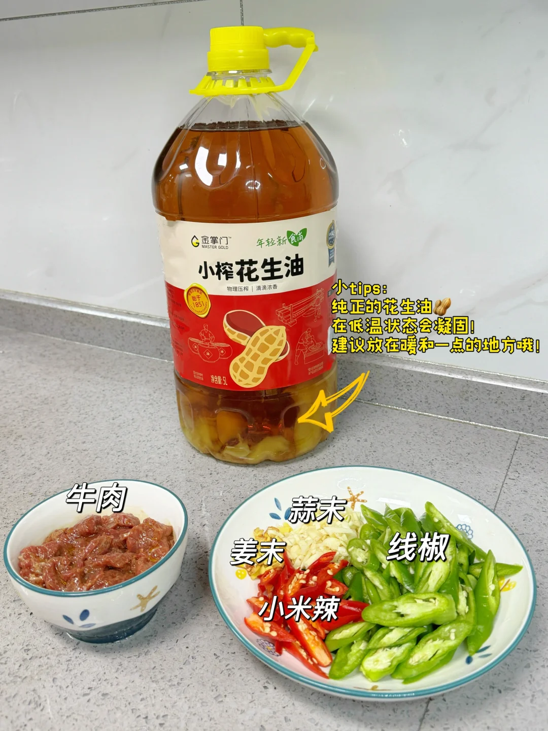 [星R]简单又好吃的辣椒炒牛肉就做好啦!又香又辣超级过瘾~这次做菜用的是新买的金掌门小榨花生油,是路易达孚旗下的品牌,作为全球500强企业品质更有保障,这款花生油是用传统小榨工艺,更好地保留了花生的自然香气,纯正的物理压榨,优质产地的精品花生米,实现了真正的鲜香每一口,用它来炒菜感觉都更香了!