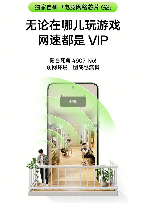 一加Ace 6T搭载电竞网络芯片 G2,针对阳台死角、候车厅等弱网场景进行优化加持,信号更强不易断。