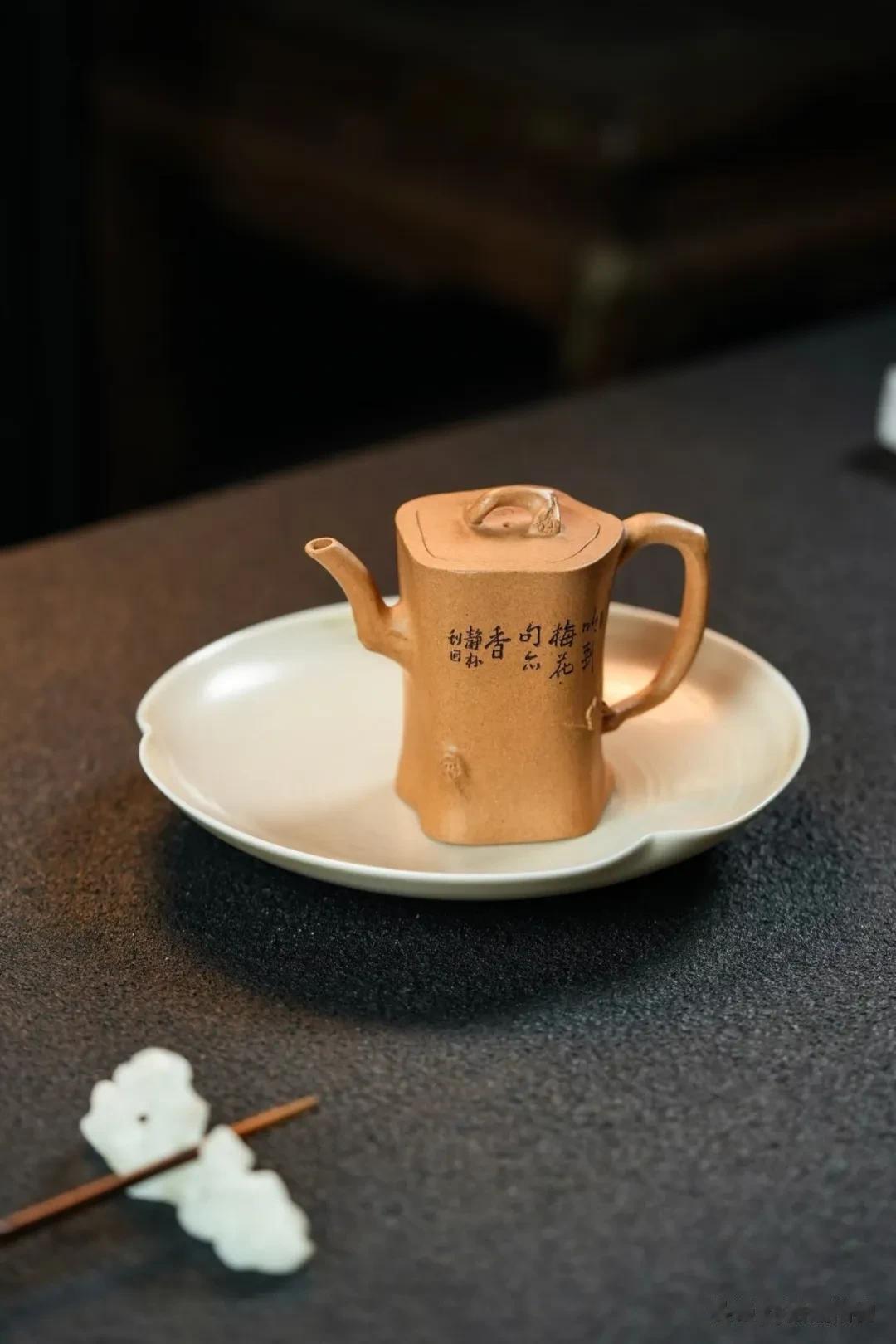 于是,它自然而然成了我茶席上的常客。不为待客,只为悦己。一壶一杯,自成天地。泡一壶清雅的乌龙,看茶叶在狭小的壶腹中徐徐舒展,茶汤从梅枝状的壶嘴细细流出,仿佛倒出的不是茶,是山间的雾,是月下的泉。它的存在,让独酌也成了一种郑重的仪式——这仪式感,不在于排场,而在于那一刻,你全心全意地对待自己,对待手中的这一握温存。