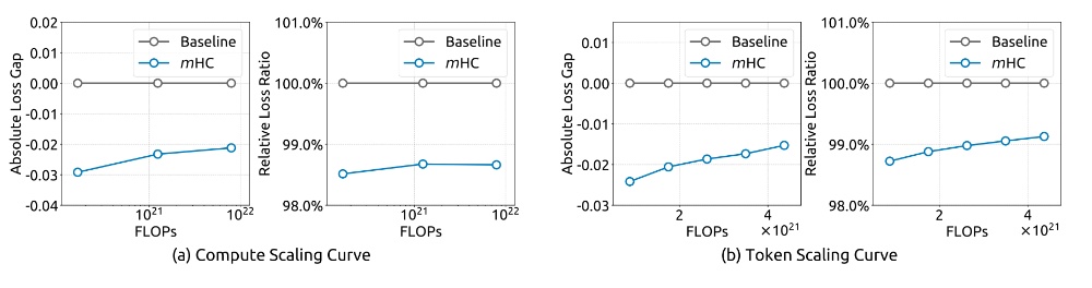 mHC将残差映射投影到双随机流形后,显著提升了前向信号与反向梯度传播的稳定性。