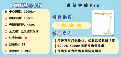 优质耐用护眼台灯推荐第四名:琪朗护瞳Pro