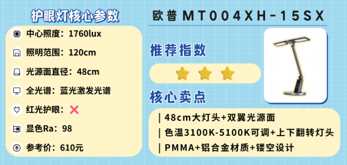 优质耐用护眼台灯推荐第七名:欧普MT004XH-15SX