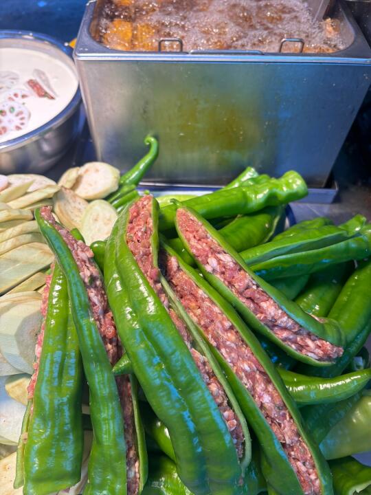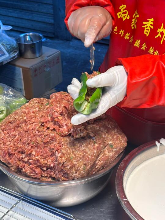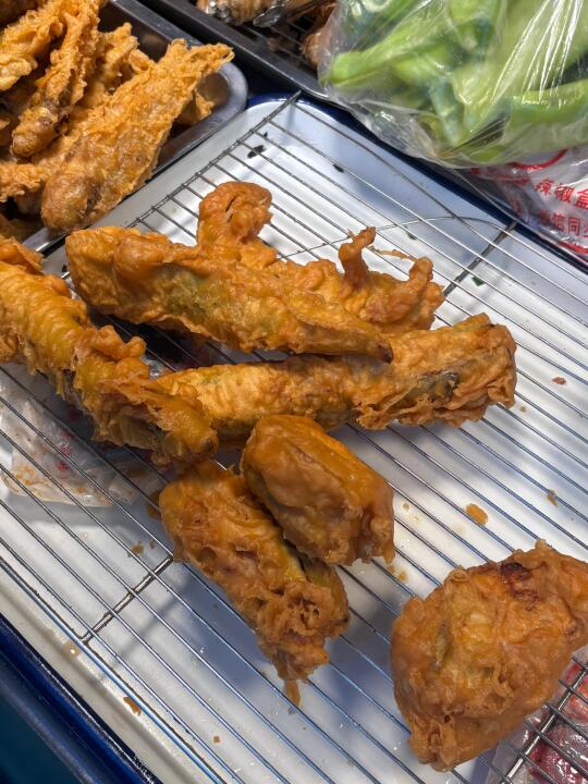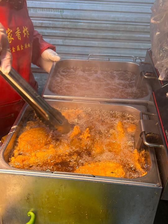 📍大连大湾市场 大概是7.30-8点差不多都会出摊 里面几家比较火的店🈶 👉🏻任贤齐打卡过的「小蜂蜜焖子」 麻酱给的很多,味道很浓郁!量很多,根本吃不完w!吃多了会有点干巴,建议一份2-3人吃~ 👉🏻任贤齐打卡过的「特色炸茄盒 藕盒 辣椒盒」 买了茄子🍆和辣椒🌶️的,一份很大…里面装了超级多肉🥩被塞的满满满满的!炸完以后真的特别香!!! 👉🏻每天都大排长队的「尹胖子油炸糕」 我去的早没有排队~除了油炸糕还有大麻花!油炸糕里面的馅料除了红豆沙还有点点玫瑰花🌹!超级香,尤其爱吃鲜花饼的一定要冲这个!酥酥脆脆的! 👉🏻老字号当地人都爱吃的「来一碗豆腐脑」 买茄盒的时候被老板娘推荐的,说是开了十几年了,当地的老字号,去吃绝对不会踩坑👌🏻 …… 还有好多我实在吃不下了!比如进门口的肉夹馍,沈阳铁板鸡架,麻辣烫……都是榜上有名!下次来再吃~