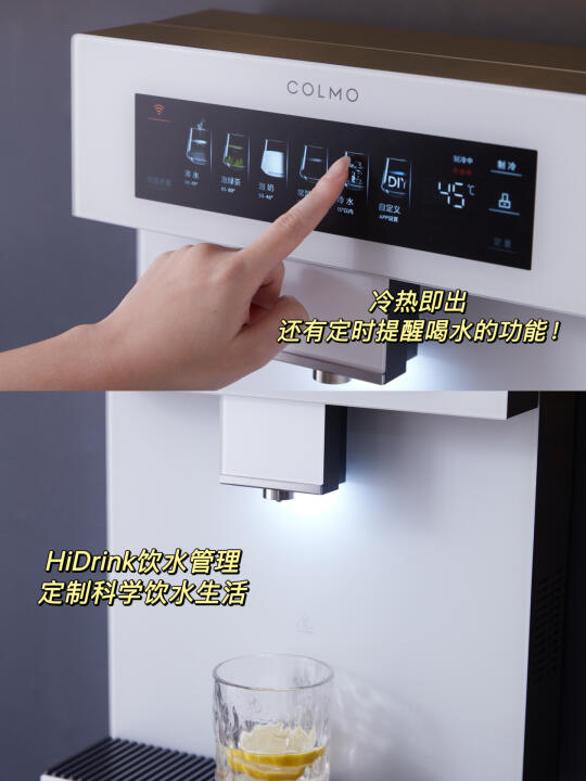 另外,我还装了个COLMO云璃白的管线机,真的超级适合我这种总是忘记喝水的人。它有提醒功能,到点就会提醒你喝水,冷热水都能直接出,特别方便!有时候做菜需要热水或者泡发食材就能直接用管线机,省了不少时间。