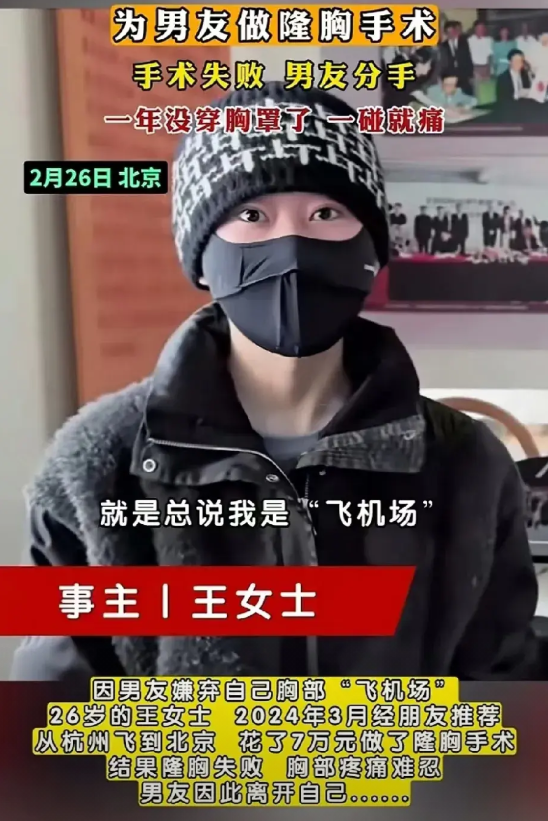 网友:“俗话说‘女为悦己者容’,这女子为了男友口中的‘飞机场’,花钱隆胸,结果失败了,男友不能碰,一碰就痛,没有笼络男友的心,反倒把男友搞丢了”
