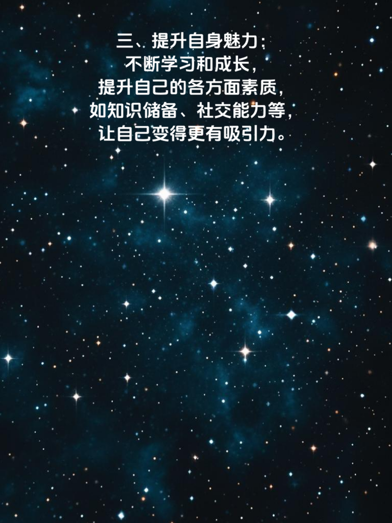 一、展现真实自我:不要刻意伪装,以最真实的自己去接近女神,这样才能建立起真诚的情感连接。比如分享一些自己的兴趣爱好、生活经历,让她更了解你。 二、保持适度关注:不要过度纠缠,也不要完全忽视。适时地关心她的生活,给她一些小惊喜,让她感受到你的在意。 三、提升自身魅力:不断学习和成长,提升自己的各方面素质,如知识储备、社交能力等,让自己变得更有吸引力。 四、学会倾听:在与女神交流时,要认真倾听她的想法和感受,给予她足够的尊重和理解,这样能拉近你们的距离。 五、制造浪漫氛围:偶尔为她制造一些浪漫的氛围,如一起看星空、散步等,让她感受到爱情的美好。