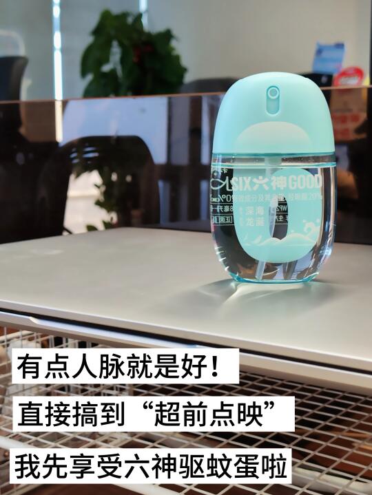 在六神上班的闺蜜 兴致冲冲的要跟我分享她们公司内部的瓜🍉 我:哈?六神能有什么瓜吃[石化R] 这可真是我从小用到大的经典牌子 产品质量我信得过 莫非是六神无主? 你们公司的六神被谁偷走了 还是六神升咖 研发出新品 十二神 从six god到twelve god[心心眼R] 每个月 月限定香味 朋友:!真是神了 你竟然能蒙对一半[棒R] 是真的有新品-六神驱蚊蛋 个人觉得是 驱蚊界神一般的存在[得意R] 它跟其他产品相比 就像甄嬛与祺贵人宫斗 轻轻松松KO 我:那“朕”为何要翻个驱蚊蛋的牌子? 朋友: 首先 驱蚊时长可达8.2小时! 我这么说你可能没有概念 其他产品基本在7小时左右 偶滴个神蛋 遥遥领先啊哈哈! 其次 我们使用的驱蚊成分 是德国进口的羟哌酯 20%的高浓度羟哌酯的添加 让蚊子迎面和你撞上都看不到你!🦟 我:这么听起来 神蛋名不虚传 朋友:是的是的!而且这款特别适合你 我:为什么? 朋友:你皮肤不是容易敏感吗 这款温和不刺激 不用担心过敏 而且你家有猫猫狗狗的🐱🐶 这款对宠物也友好 你最近踏青、露营用着正合适! 我:那我不得不买了 养宠人谁能拒绝宠物友好产品 不过你不是说有三个味道 你觉得我更适合哪一个? 朋友:深海龙涎! 喷出来是淡淡的水生木质香 让人彷佛瞬间置身于广阔无垠的海边[海豚R] 海风带着丝丝凉意向你吹来 令人倍感清爽! 其他两款则是花果香和花木香 我:听起来都好心动 我选择all in!