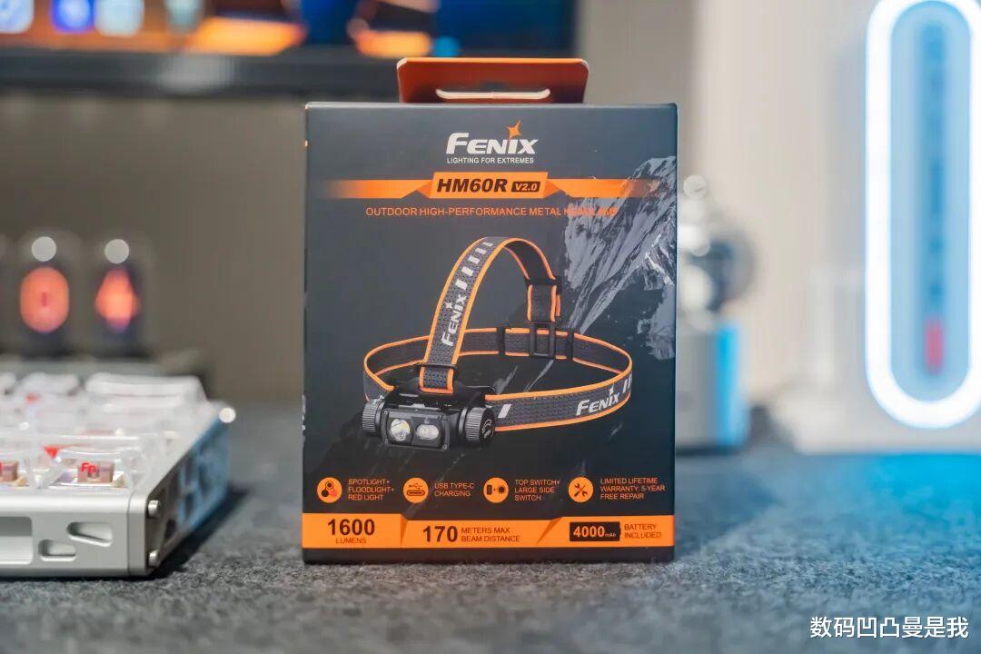 Fenix HM60R V2.0的外包装风格就凸显了品牌的专业性。深色硬质纸盒搭配产品主视图和品牌LOGO、产品名称等,视觉效果突出,亮度等关键参数则排列在底部,清晰直观。