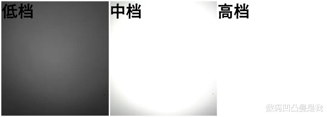 下图是泛光模式三档亮度对比,0.5米垂直照射墙面,泛光模式在最低档可以提供弱光照明,中档下手机拍摄已经是高度过曝了,开最大档后则过曝区域进一步扩大,说明日常使用中档亮度已经足够。