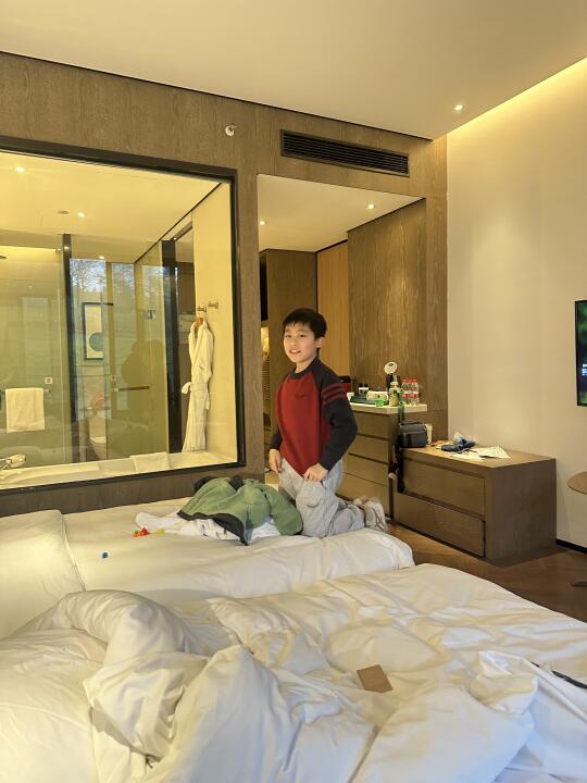 4️⃣娱乐场所:室内游泳池🏊♀️,室外沙滩排球🏐,射箭🏹,乒乓球🏓,瑜伽🧘♀️,室内外儿童乐园🛝,健身房🏋️♀️,KTV🎤,家庭游园会👬(晚上的part,时间有点晚了,要10点才结束,小朋友们是嗨翻了天)