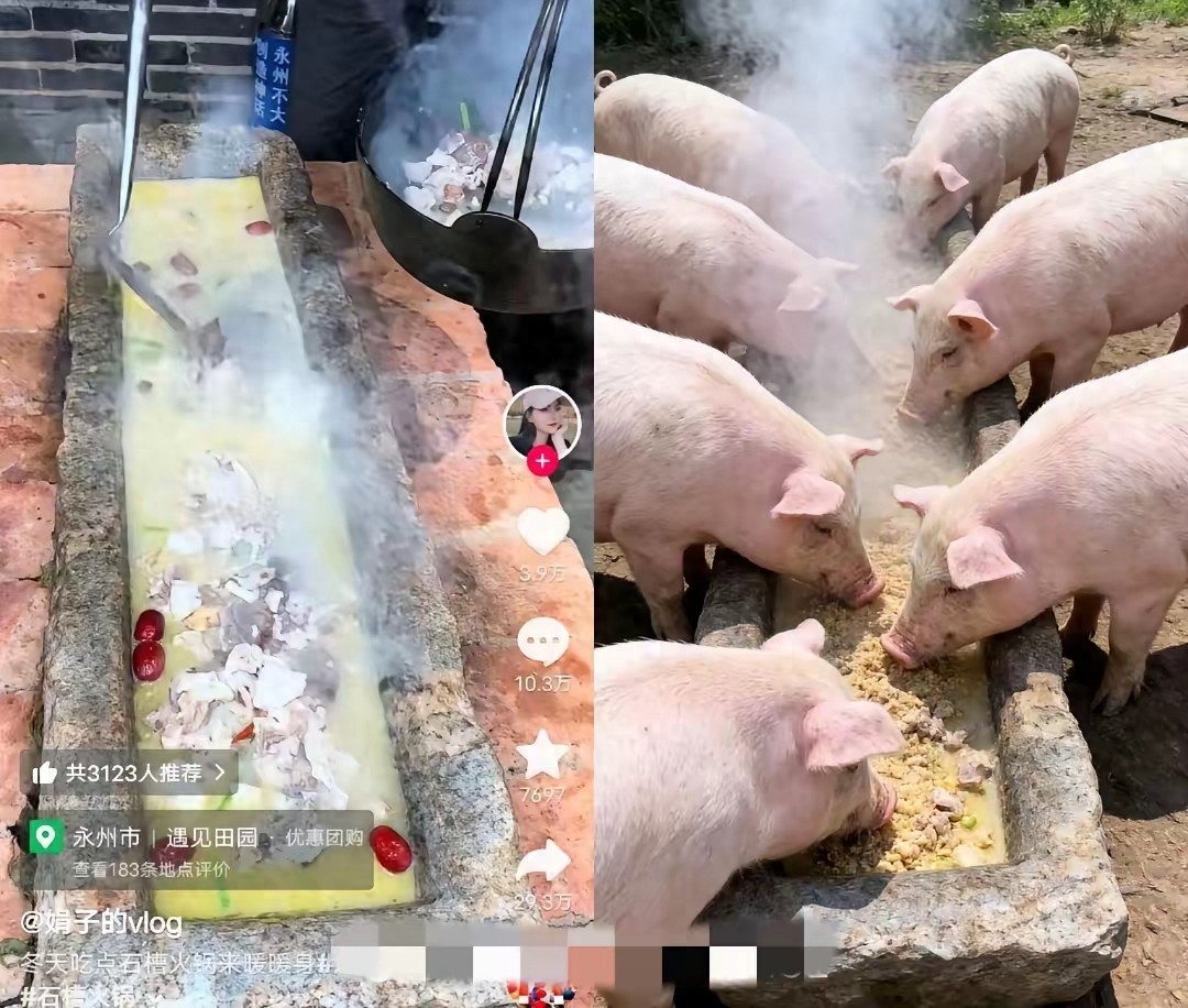 不止是30年前,其实现在很多的养猪场还在用这种石槽喂猪,虽说老板强调了,很安全很干净,还是遭到很多的食客质疑,