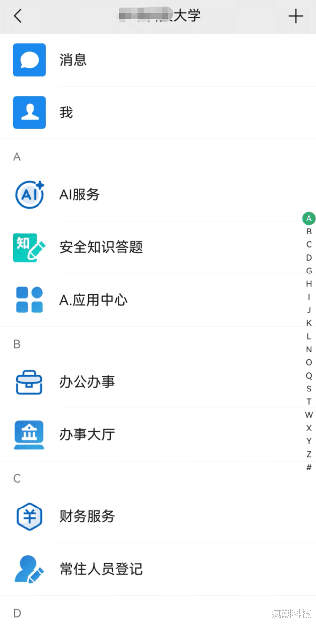 此外,在“我的企业”版块中,你可以绑定自己所在的企业或高校单位,随时接收最新通知。点击进入对应企业号,即可在工作台中完成多项事物:如查询期末成绩、给校园卡充值、查看校内新闻、预约各类校园服务……在鸿蒙版微信里都能一站式搞定。