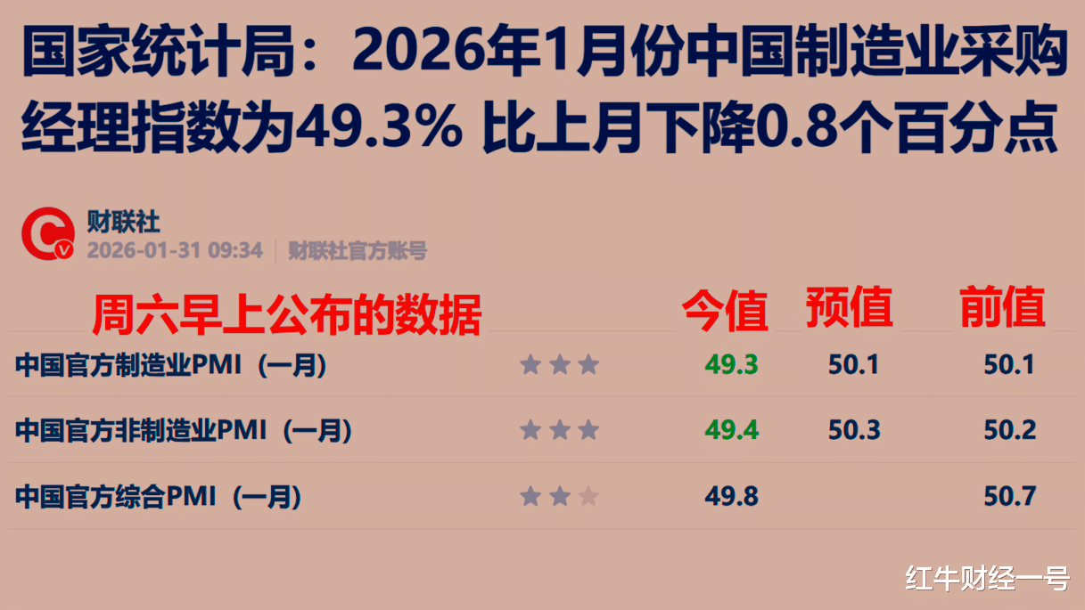 二、周末期间统计局公布了制造业及非制造业PMI数据,数据双双转弱,并落入50荣枯线之下,这将一定程度上影响今天A股走势。
