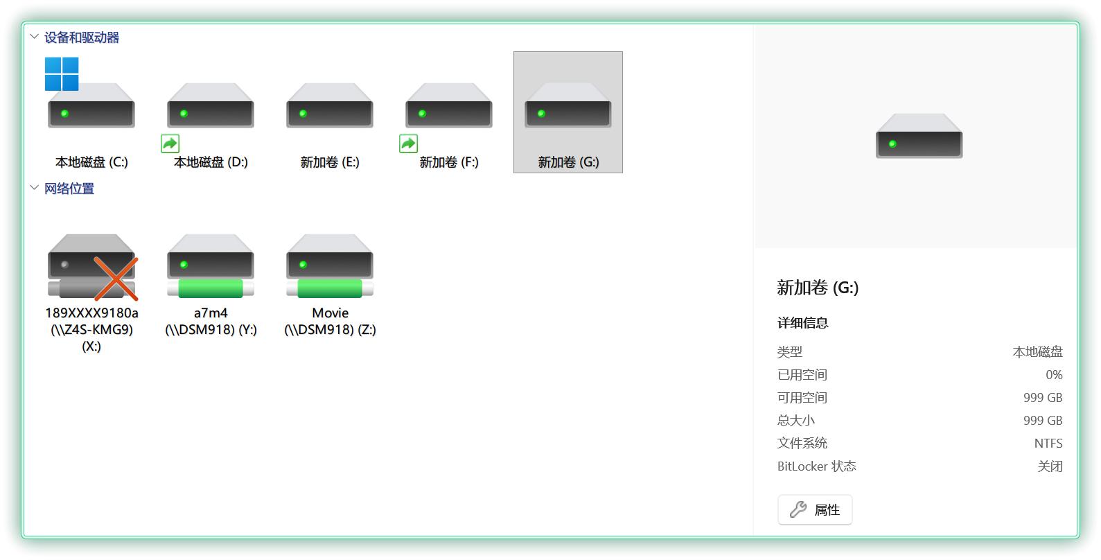 ▼利用 iSCSI 挂载的 NAS 硬盘,直接被归类为本地磁盘。