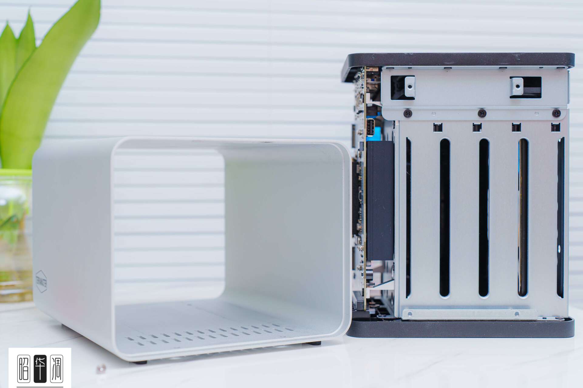 ▼拆除底部的四枚螺丝即可把金属外壳直接抽离,可以看到,铁威马F4-425 Plus的外壳采用的是一体成型工艺,稳固性和耐用性可见一斑。