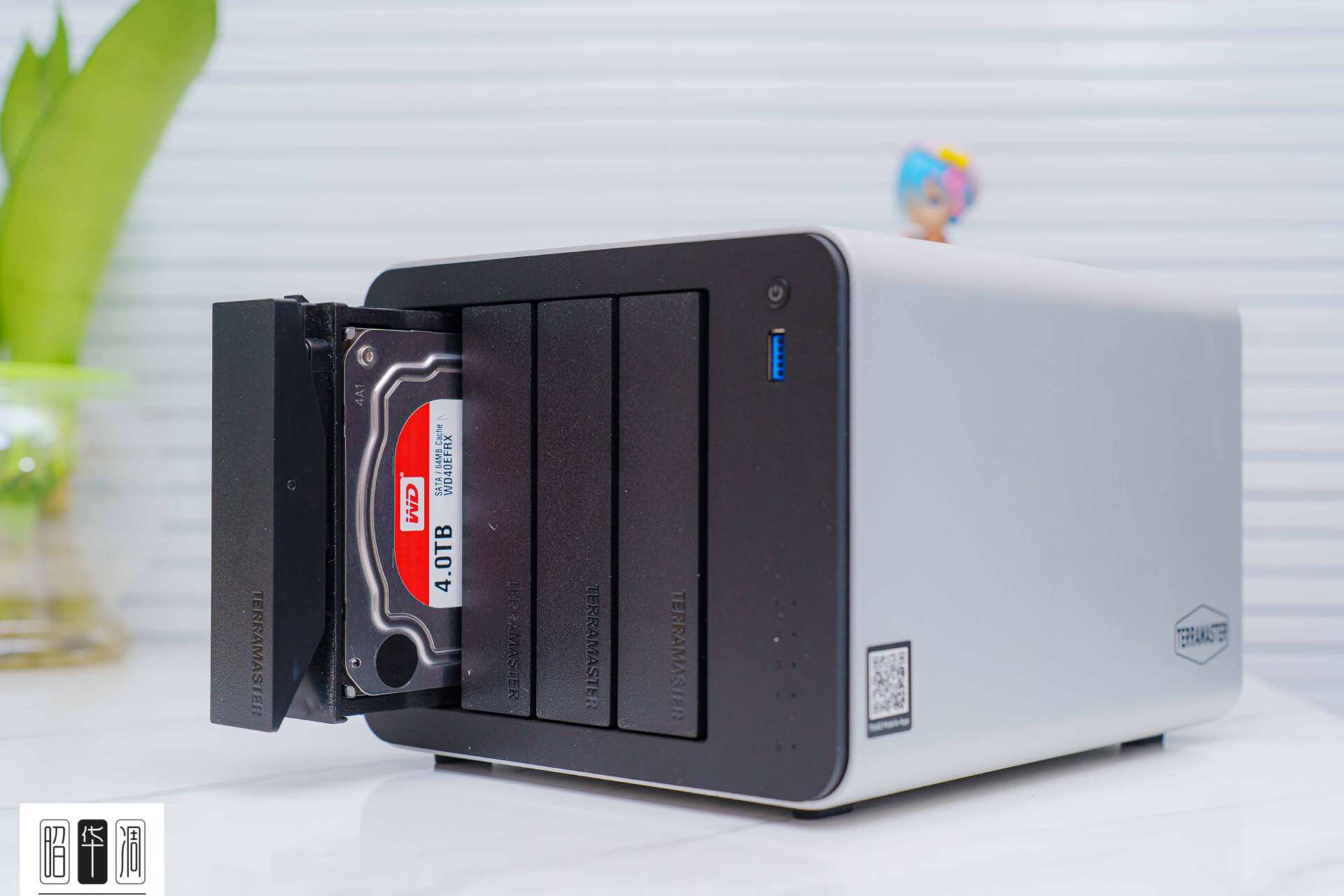 ▼作为一款 4 盘位 NAS,F4-425 Plus 采用了独特的“ 3 + 4 ”存储架构。正面的 4 个硬盘仓位最大支持单盘 30TB 的 3.5 英寸机械硬盘(兼容 2.5 英寸 SSD),理论容量上限达到了惊人的 120TB。