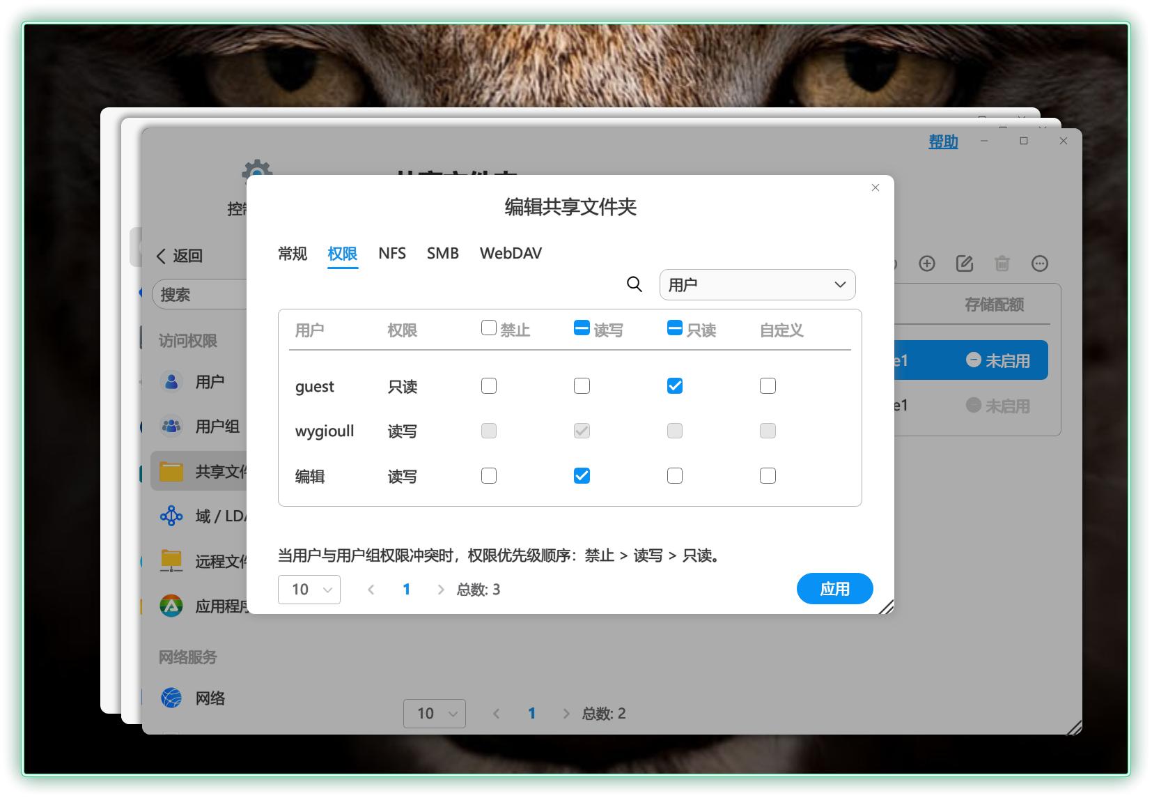 ▼其次就是权限管理,除了常见的只读、只写、禁止三种权限外,TOS6 还增加了 13种其它权限,并且支持用户自定义,可以实现权限的灵活管理和精细化控制,尤其适合部门多、人员多的企业用户使用。