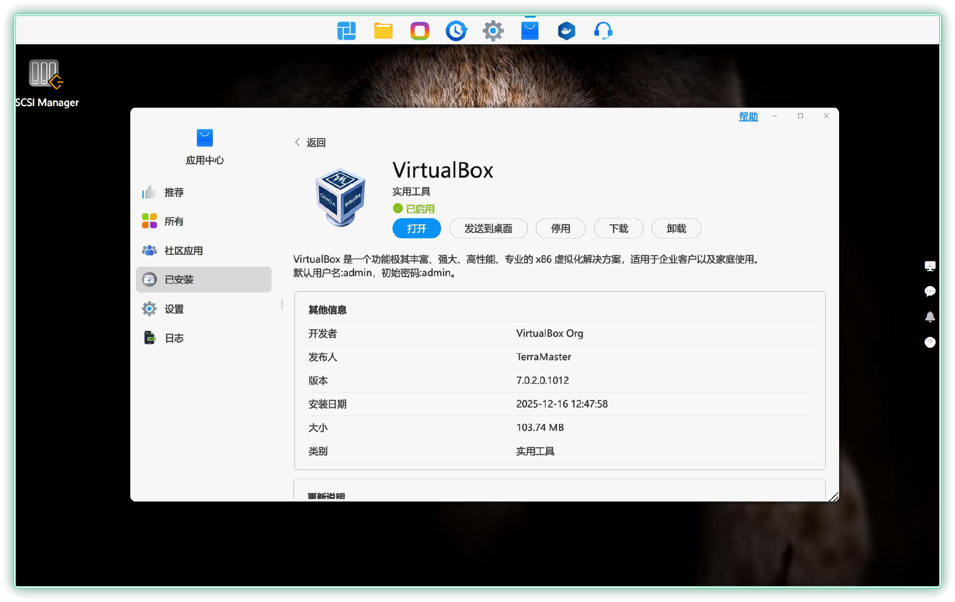 要实现 iSCSI 挂载,首先在应用市场安装 iSCSI Manager。