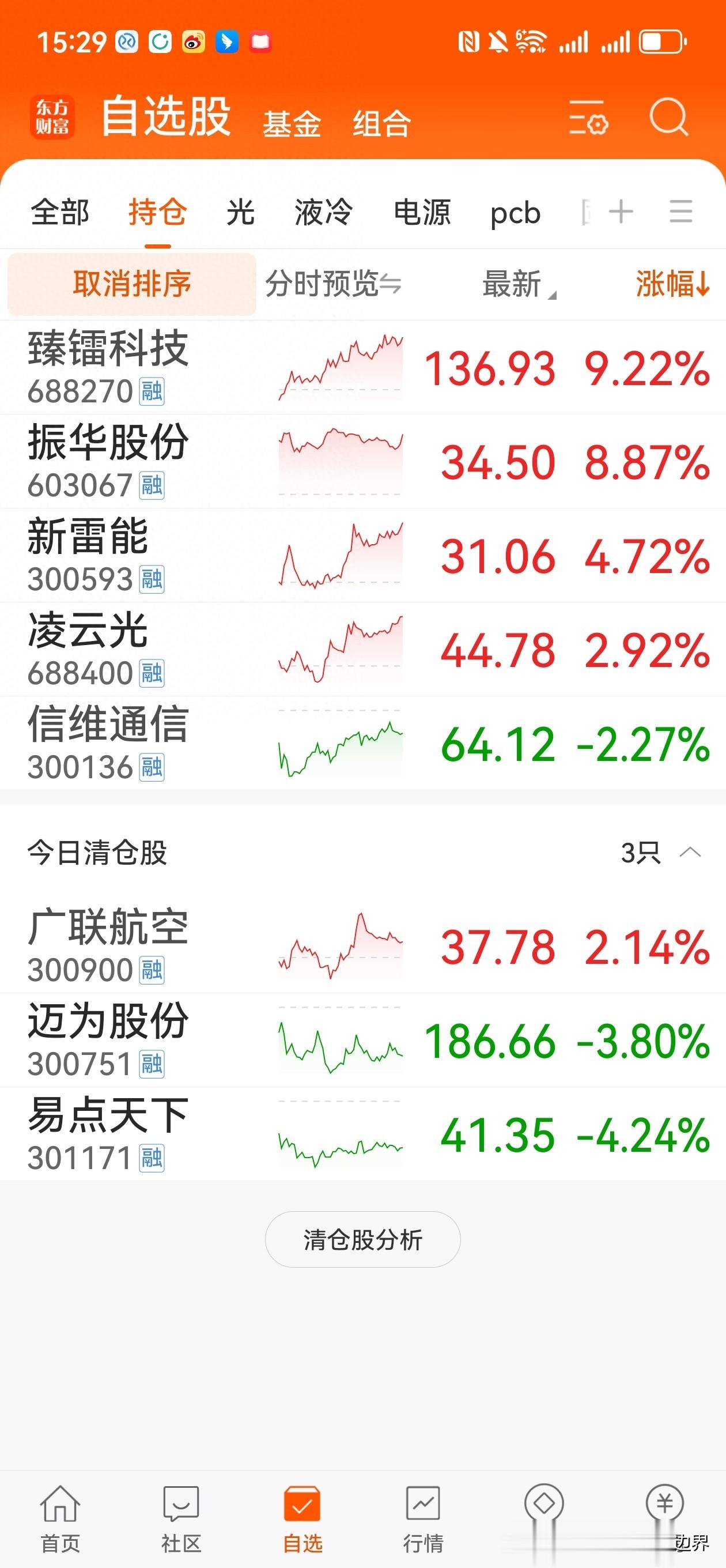 ①锁仓:信维通信、臻镭(今天都有做T,底仓未变,中线看好)。