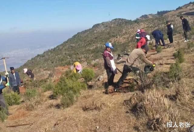 据参与种树施工的相关人员介绍,种植山地不乏砂砾土质,为保证成活率,每棵树需挖60X60厘米种坑,有的地方因全是石头,还需从别处拉泥土填坑种植。