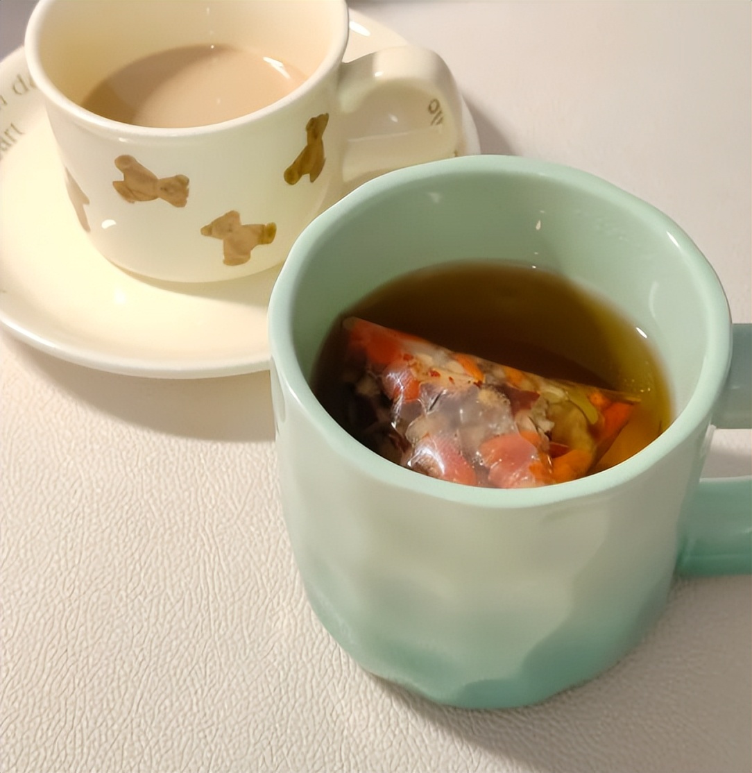 我妈平时都是喝白开水,顶多里面泡两片柠檬;我爸就更简单了,大水杯里面泡茶水。