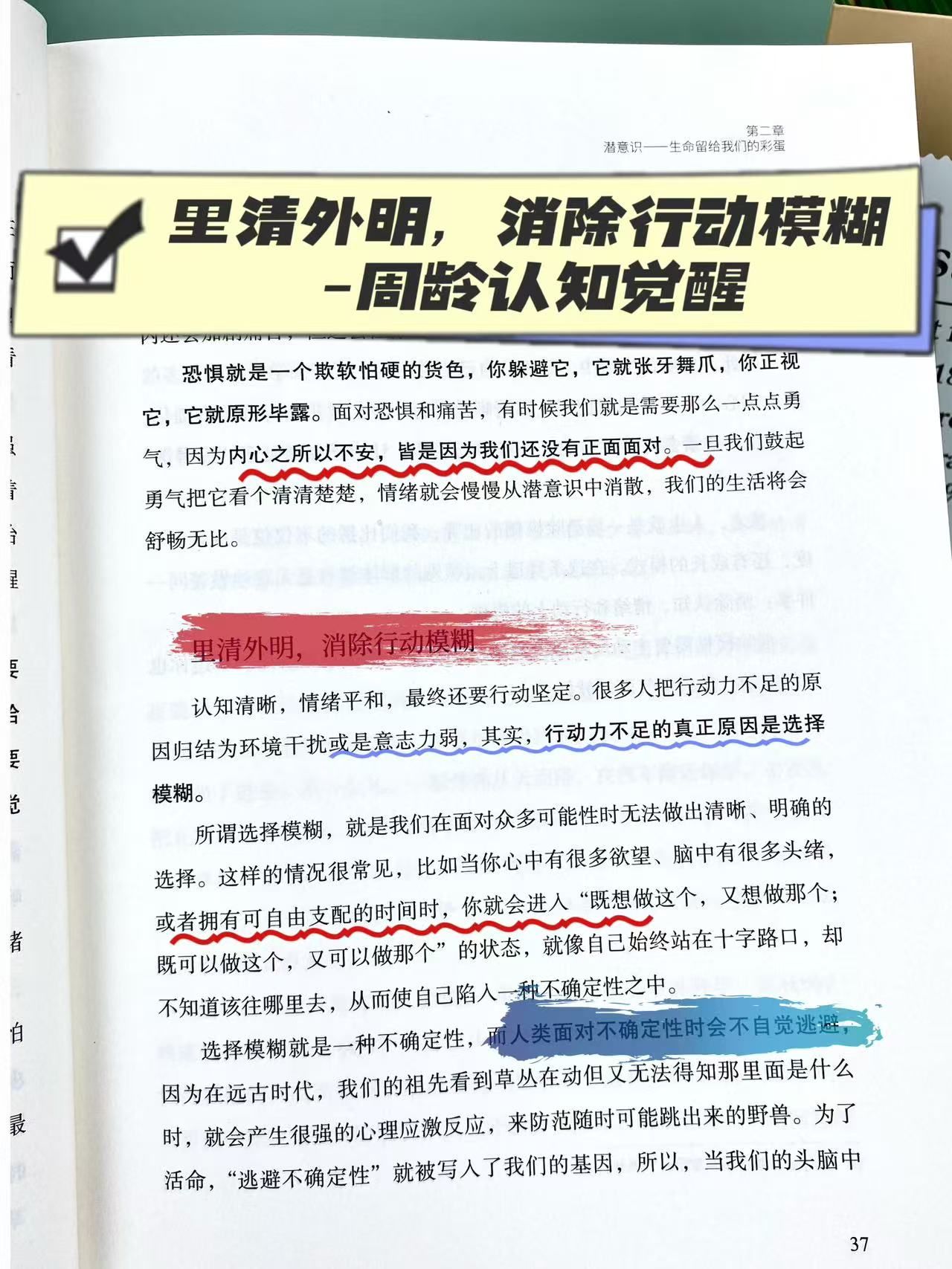 "认知清晰,情绪平和,最终还要行动坚定。很多人把行动力不足的原因归结为环境干扰或是意志力弱,其实,行动力不足的真正原因是选择模糊。
