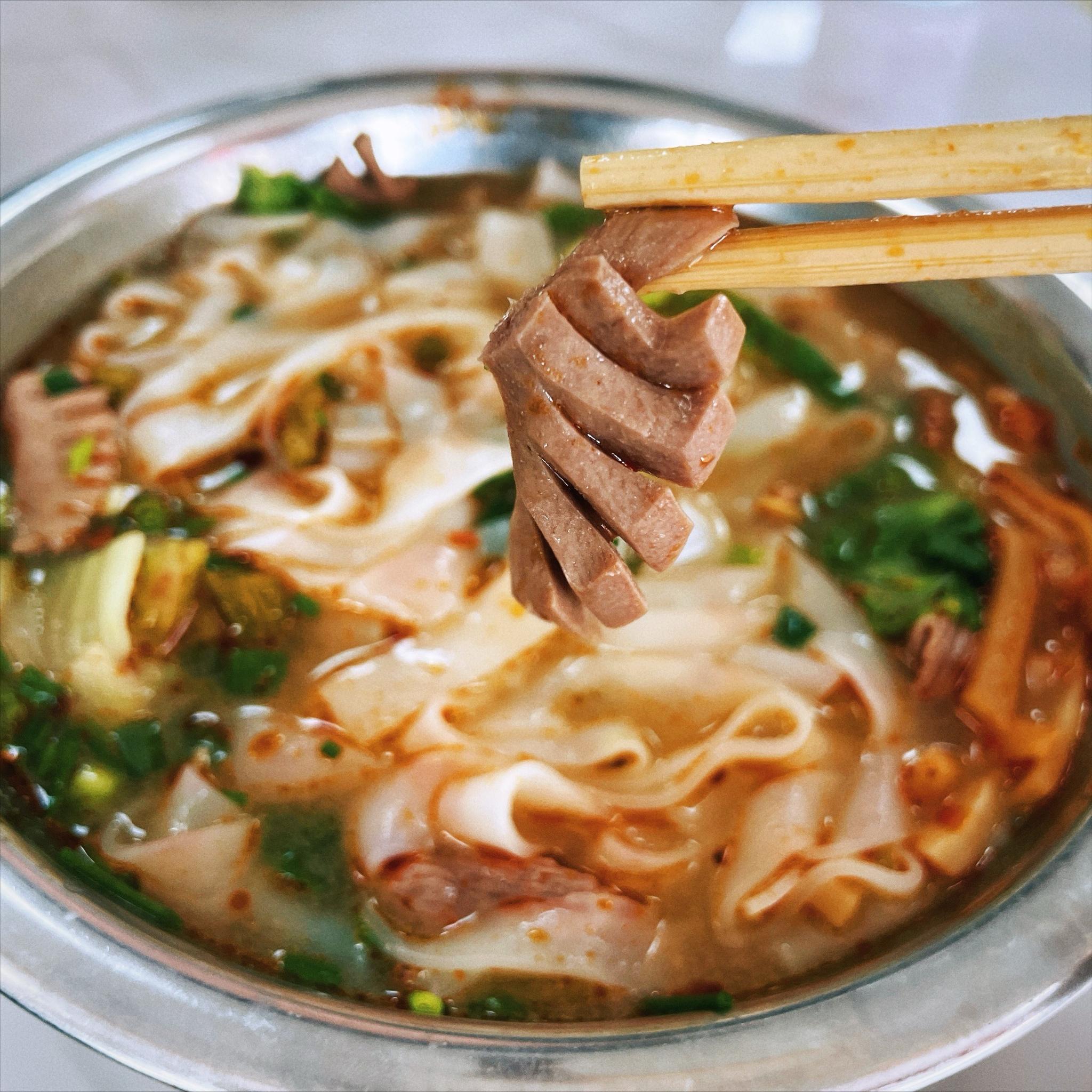 鲜湿米粉在沸水中快速烫熟,浇上高汤,再加入横肝、瘦肉、烧肠等自选肉菜,最后撒上酥豆、葱花和油辣椒这“三件套”。吃柳州煮粉讲究“嗦”的艺术,柔韧的米粉滑入口中,伴随着鲜美的汤汁,让人忍不住一口接一口。